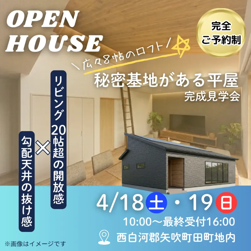 【4/18㈯・19㈰】平屋のお家 完成見学会開催