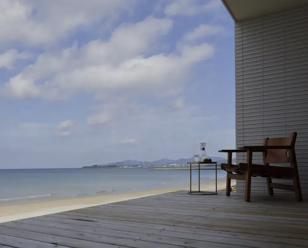 海側に浴室と洗面室を配置。 サーフィンの後、海から直行できる動線を確保し、海とともにある暮らしを、より快適なものにしている。