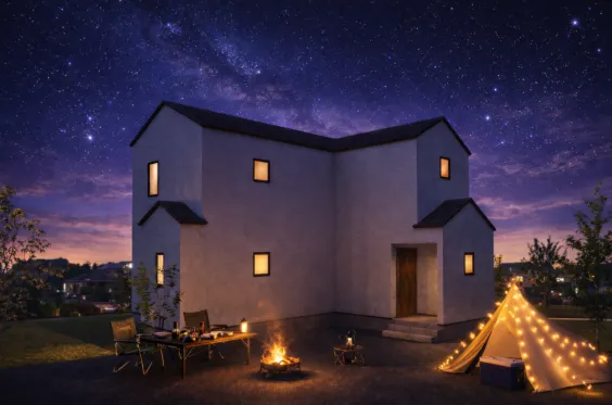 外観はグレートーンで統一し、上品でホテルライクな佇まいに仕上げました。シラス外壁特有の細かな凹凸が、昼はやわらかな陰影を生み、夕方にはしっとりと落ち着いた表情へと変化します。 屋根材には、軽量で耐久性に優れたオークリッジスーパーを採用。瓦の約4分の1の軽さで建物への負担を軽減し、錆びにくく割れにくい特長を備えています。 外壁のシラスそとん壁は、完全国産の自然素材。汚れに強く、消臭や有害物質の吸着・分解効果も発揮する、人にも環境にもやさしい外壁材です。 (画像はイメージです)