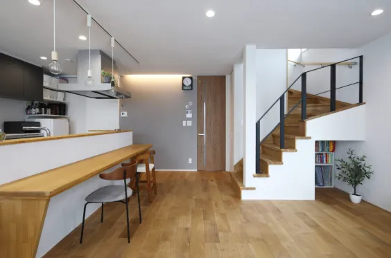 キッチンテーブルの横には、目隠しとなる仕切りを設けました。 あえて“見せない”ための工夫です。生活感が出やすいキッチンまわりを程よく隠せるため、突然の来客時にも安心。水はねや油はねがダイニング側へ広がるのも防いでくれます。 リビング側にはスイッチやリモコンをすっきりとまとめられる、リモコンニッチを製作しました。コンセントの増設にも対応できる、機能性を備えた便利な設計です。 (画像はイメージです)