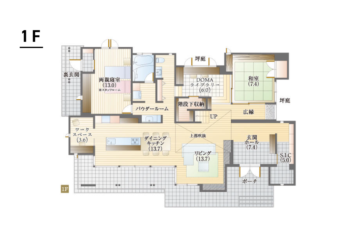 坪庭を眺めながら趣味に没頭できる土間敷きの趣味室