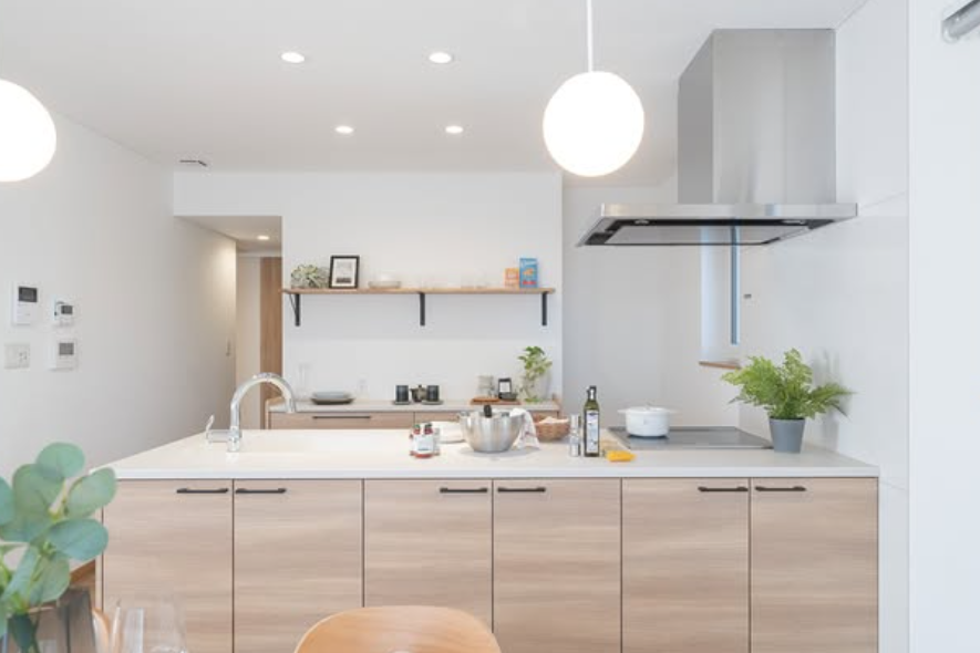 視線を遮る壁をなくし、ダイニングと一体感を持たせることで、家事をしながらも自然と会話が弾む、あたたかな空間が生まれます。