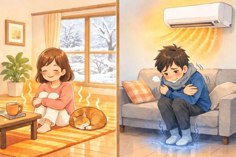 エアコン暖房は、暖かい空気が天井に溜まりやすく、足元が寒くなりがちです。
