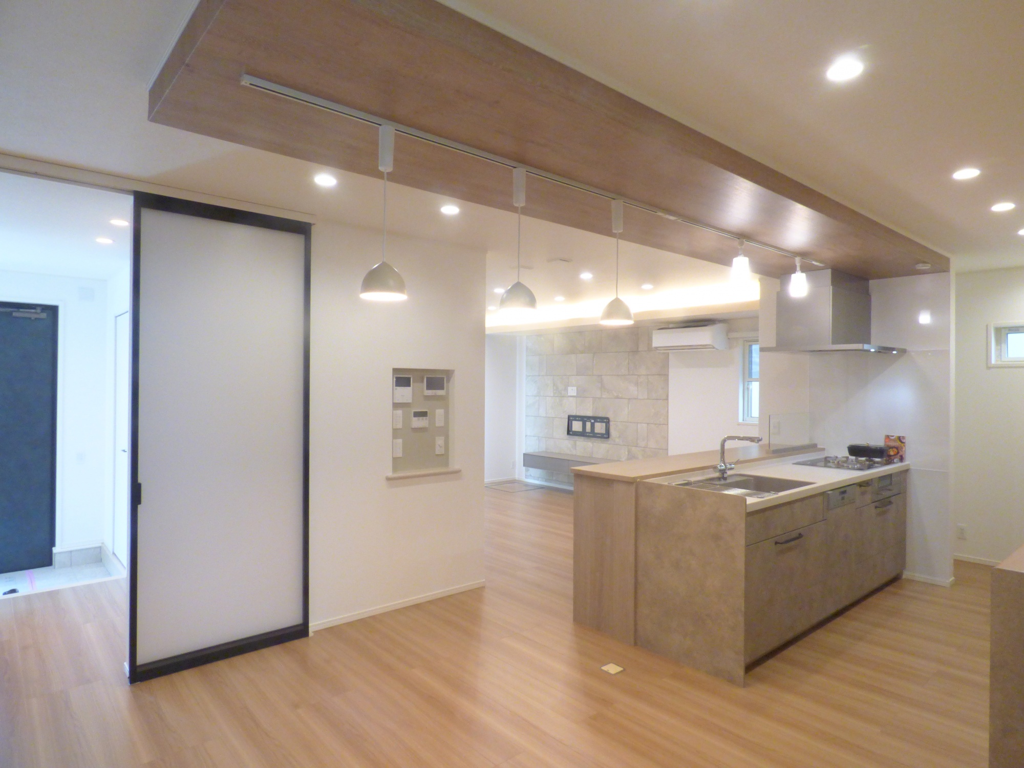 リビング天井を勾配天井にすることでより広がりを感じる空間を演出してくれます。
