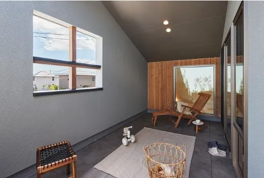 外の視線を気にせず、大人も子供も外遊びができるように。 リビングと繋がる大きな窓を設けました。 おしゃれなだけじゃない、毎日使いやすい愛着デザインの家づくりを提案します。