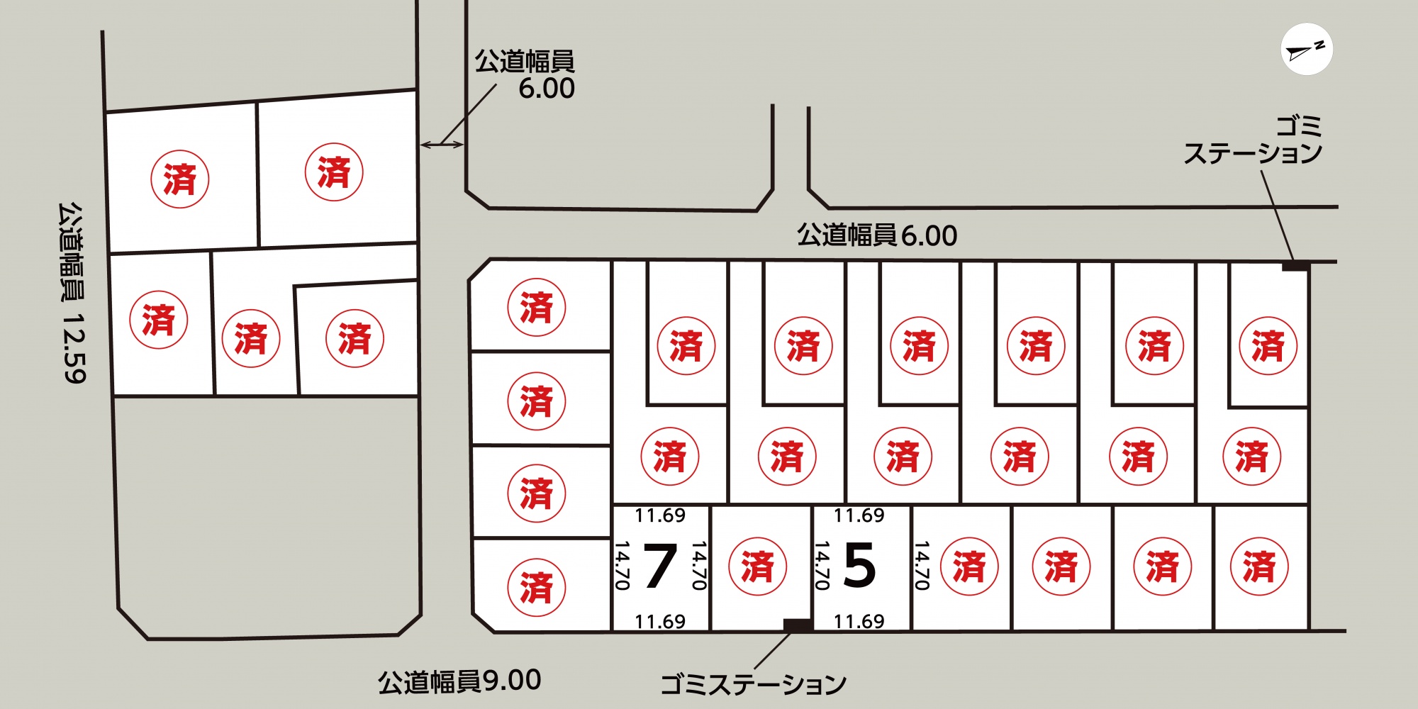 【5】東側幅員9.00mの公道に11.69m接する【7】東側幅員9.00mの公道に11.69m接する
